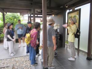 その後のミステリーツアーの中身。蓮如の里に寄り自由散策。「嫁威肉附面縁起」のお面を見に行ってお話を聞いたり、道の駅で買い物三昧などなど。九谷で九谷焼の説明を聞きと鑑賞をして九谷焼に盛られた美味しい料理に舌鼓。それから金沢へ。長町武家屋敷からガイドさんと共に金沢城まで歩きます。尾山神社から初めて鼠多門を通って金沢城へ入場。新しく綺麗に整備されているところも多かったのですが、地震で石垣などの補修工事をされているところが多かったです。特に戦争時に石垣を崩して武器庫としたところが崩れ、何もされていない石垣はそのまま残っているというお話に江戸時代の石工の技術の高さに感銘を受けました。参加者はNHKのブラタモリをご覧になっている方も多く、観光ガイドのまいどさんの説明を楽しく聞き入って「ブラタモリ」体験をしてきました。