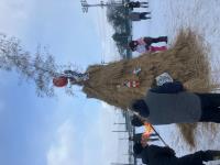 1月12日の祝日に、若栗小学校のグラウンドで左義長が行われました。心配された天気は上々で、たくさんの方々が見学に来られました。