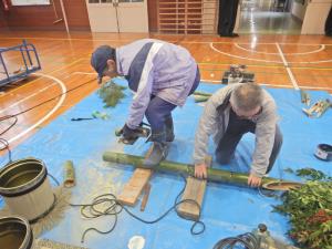今年も皆さんが協力して、公民館玄関前に飾るための特大の門松も作ってくださいました。