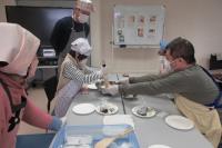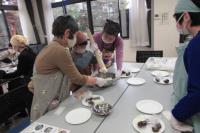 おばあちゃん達に作り方を教えてもらいながらチョコレートあんを中に入れたごまときなこのおはぎと