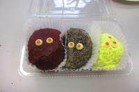 定番のあんこのおはぎを作り、最後にチョコレートで作られた目玉をのせて「おばけのおはぎ」を作り