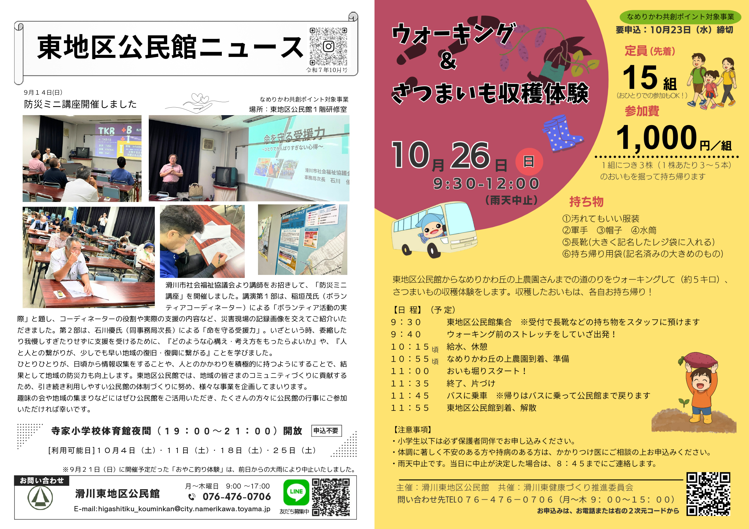 また、26日(日)にはウォーキング&サツマイモ収穫体験を開催します。