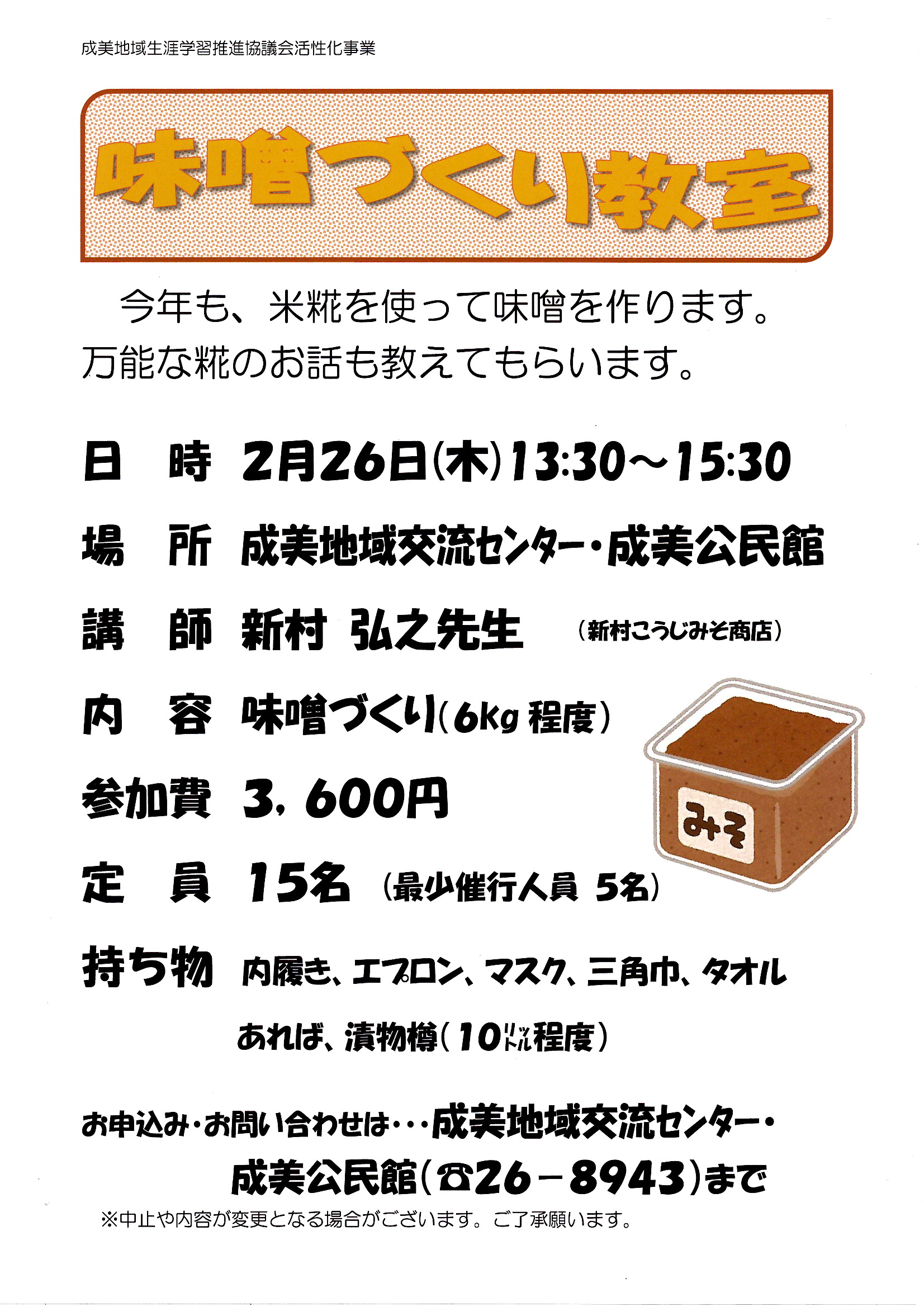 お申込み・お問合せは、成美地域交流センター事務所窓口(電話 0766-26-8943)まで