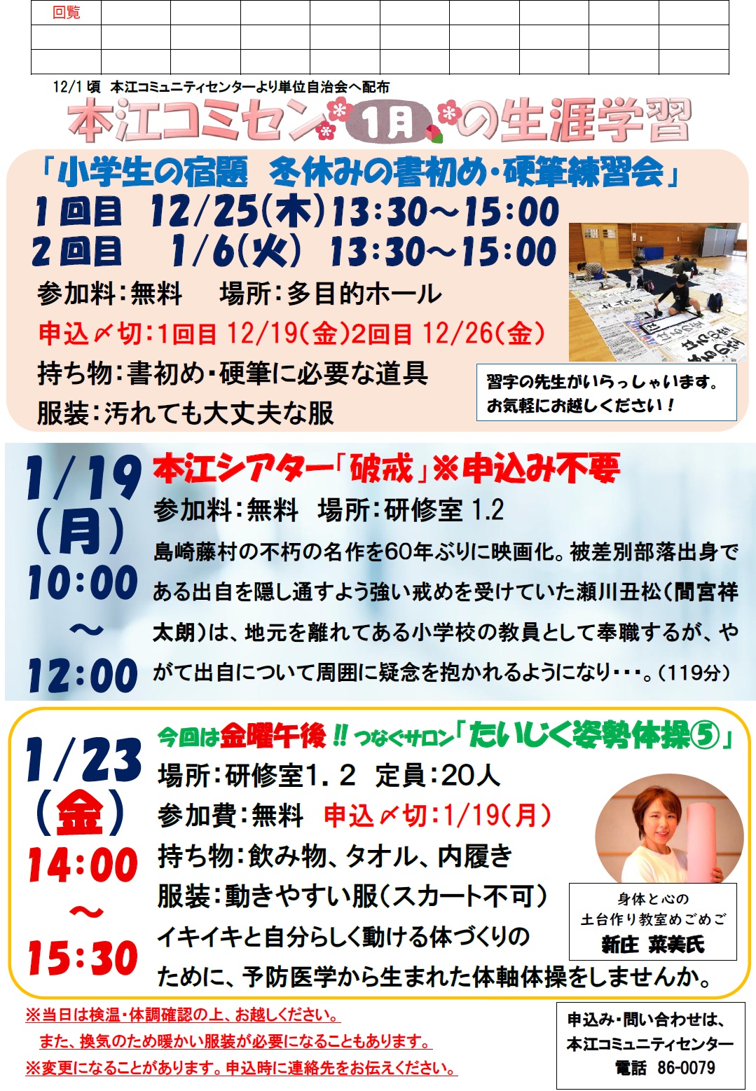 本江コミュニティセンター 1月のイベントのお知らせ