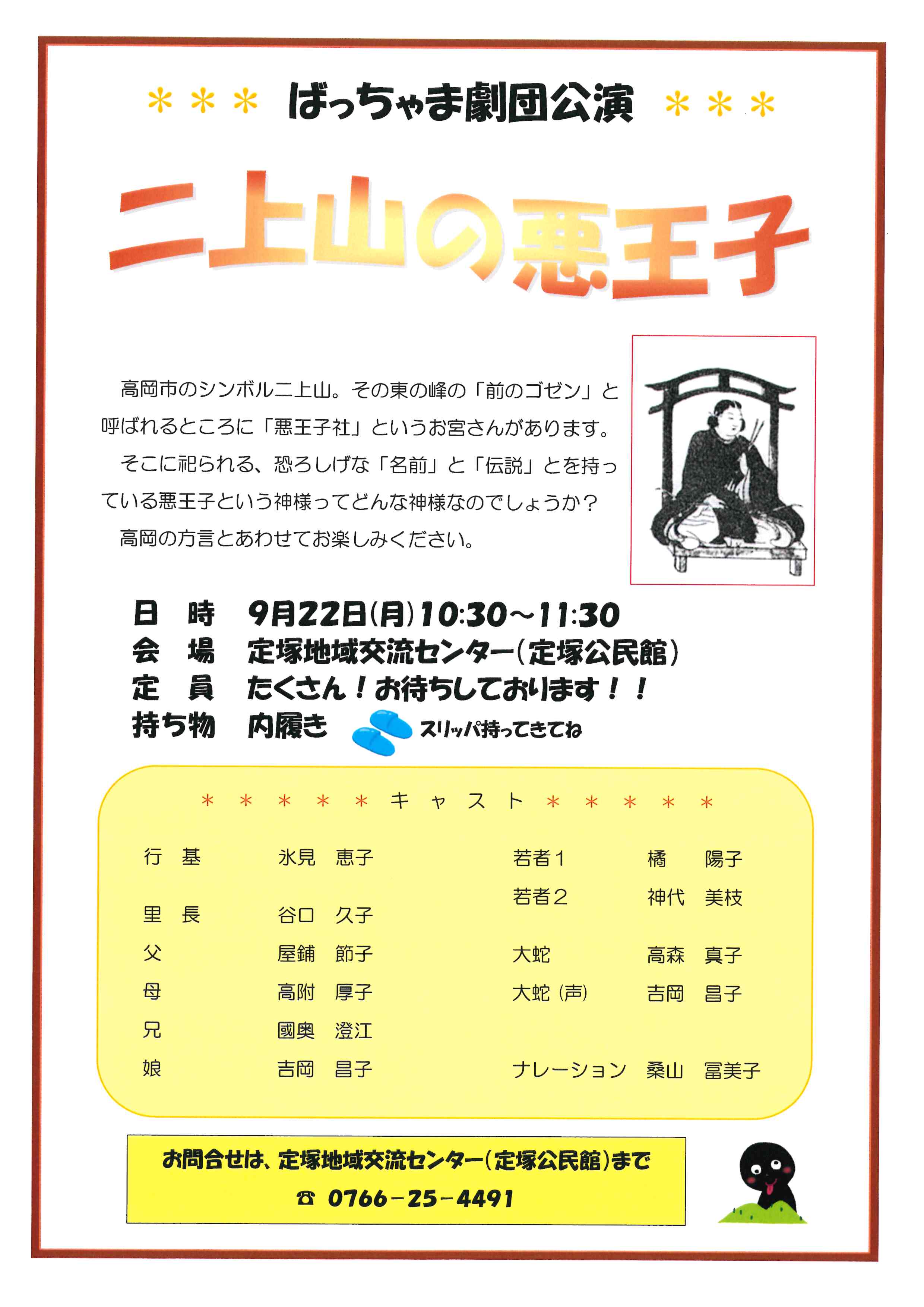 ※人数を把握するため、事前に定塚地域交流センター・定塚公民館(☎ 0766-25-4491)までお申し込みください。