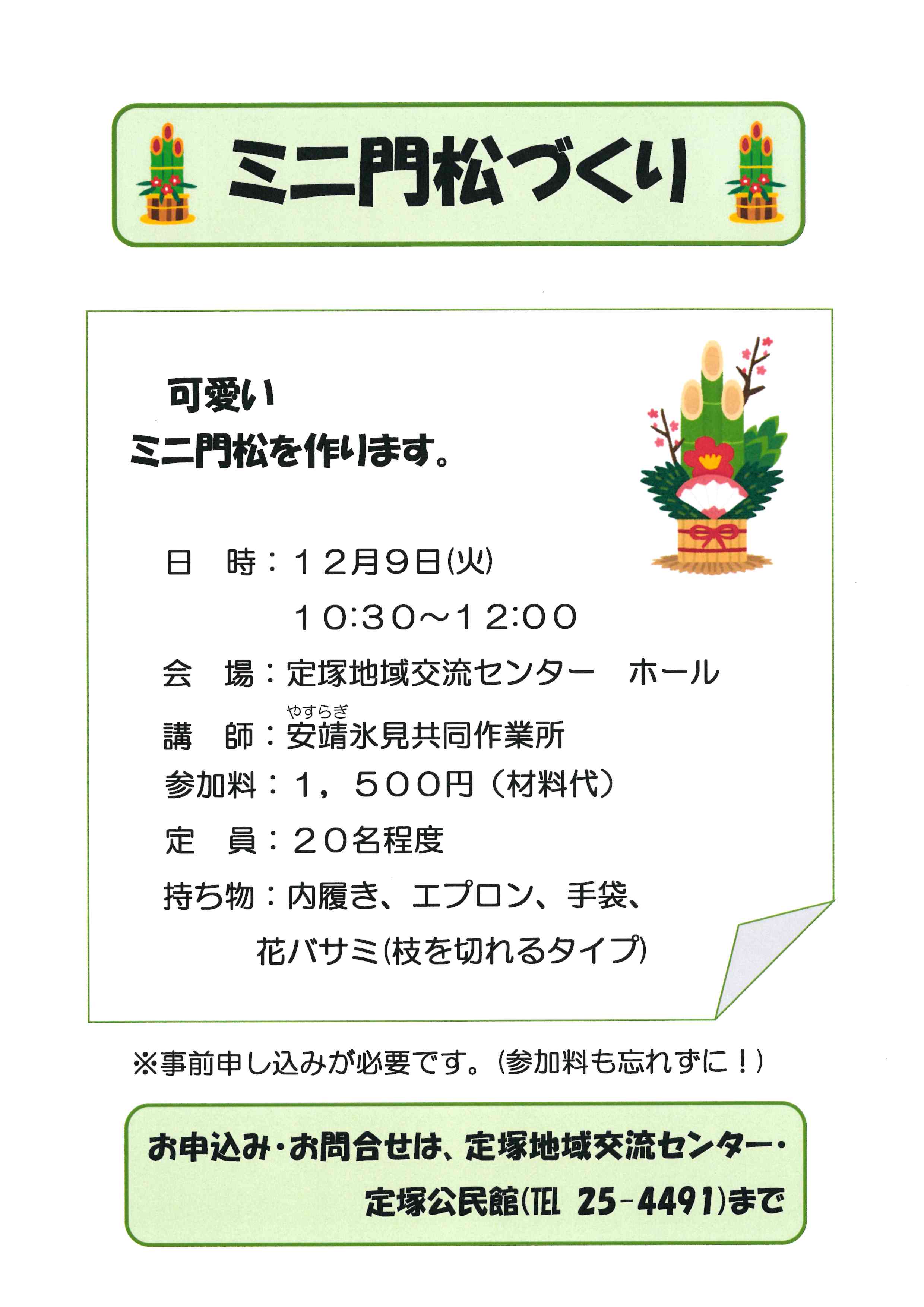 ※お申し込みは、参加料を添えて定塚地域交流センター・定塚公民館事務所(TEL 0766-25-4491)まで