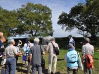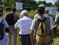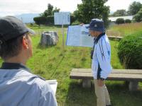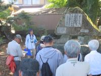 つながる学びわくわく講座つながる体験コース LAA29「ふれよう!新川 -魅力体験-」第1回 [更新日:2025年10月29日] 「ふれよう!新川-魅力体験-」 第1回 日 時:令和7年10月10日(金)10:00〜12:00 場 所:魚津市経田地区 講 師:魚津観光ボランティア 会長 伊東清隆 氏、書記 前澤律子 氏 「立山開山伝説の地・京田(経田)を歩く」 コース:県民カレッジ新川地区センター→片貝橋・「斎沢村と片貝川」案内版→渡し番小屋跡→大徳寺境内→鍛冶屋田・天王寺→有頼柳→新川地区センター 講師の伊東氏(左)、前澤氏(右) 今回の講座では、渡し番小屋跡や大徳寺、有頼柳などの史跡を巡りながら、立山遥拝の聖地として「神である立山」に仕えた斎沢村の伝説にふれました。 また、給田や京田から経田へと続く地名の由来や、立山開山伝承の変遷、片貝川の川越えの歴史などについて学び、地域の深い歴史を感じることができました。 さらに、経田地区が征蝦夷の兵站基地としての役割を担っていたこと、天王寺の寺社町として栄えたこと、大伴家持の詠んだ「タチヤマ」は毛勝山を指すという興味深い説など、講師の皆様から多くの興味深いお話を伺いました。 <片貝橋袂の「斎沢村」紹介看板> かつてこの地にあった斎沢村は、1372年の片貝川大洪水で大部分が川底に沈んだと伝えられています。現在の片貝川の川筋はそのときからだそうです。 <渡し番小屋跡とかすみ堤> 明治6年に片貝川に仮橋が架けられ、賃取橋としたときに設けられた渡し番小屋の跡とされています。また、近くには、破堤への対策として築かれた「かすみ堤」の跡がありました。日本一の急流河川とされる片貝川に挑んだ人々の苦心をうかがうことができました。 <大徳寺の大伴家持歌碑> 立山開山の祖・佐伯有頼が建立した慈興寺を前身とする大徳寺には、大伴家持が詠んだ「片貝の川の瀬清く行く水の 他ゆることなくあり通ひ見ん」の碑が立っています。ここでは、伊東講師より、大伴家持の「立山の賦」や池主「敬和賦」が紹介され、家持が詠んだ「タチヤマ」が現在の毛勝山を指す可能性について、説得力あるご説明をいただきました。 <天王寺跡地、鍛冶屋田、平伝寺仏> 平安時代、この地には大寺・天王寺があったと伝えられています。また、経田地区は征蝦夷の兵站基地であったと考えられ、小字「鍛冶屋田」は、武器などを製造する鍛冶集団に与えられる「給田」であった可能性があるとのことでした。また、「経田」という地名は、「京田」「経典」「給田」などに由来するともいわれ、地名に秘められた歴史的背景を知ることができました。 <有頼柳・有若舘跡> 立山開山に登場する佐伯有頼と父・越中国司佐伯有若が舘を構えたとされる地です。ここでは、鎌倉時代の「類聚 既験抄」や「伊呂波字類抄」、江戸時代の「和漢三才図会」などにみられる立山開山伝承の移り変わりについても紹介がありました。 秋晴れのもと、参加者の皆さんは古代から中世、そして現在へと続く経田の歴史に触れ、その土地に秘められたロマンと魅力をたっぷりと感じることができました。 <参加された皆様の感想より> 「天気も講師さんの説明も良く大変良い勉強でした。」 「貴重な歴史を講座を通して知ることができて、とても楽しかったです。良い気候で、歩きやすかったです。」 「日頃、車で通っているところですが、歩いてみると、経田のことが少し理解できました。」 「身近な場所ですが、知らないことが多くあり、新たな発見がありました。」 「歴史がよく分かり、認識を新たにしました。」 「ゆっくりと、郷土史を学ぶことができました。楽しかったです。」 お問い合わせ先 新川地区センター 〒937-0011 富山県魚津市木下新144 電話番号:0765-22-4001 FAX番号:0765-22-0901