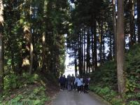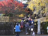 つながる学びわくわく講座つながる体験コース LAA29「ふれよう!新川 -魅力体験-」第3回 [更新日:2025年11月14日] 「ふれよう!新川-魅力体験-」 第3回 日 時:令和7年11月7日(金)10:00〜12:00 場 所:黒部市宇奈月町下立 講 師:黒部峡谷ナチュラリスト研究会 松木紀久代 氏、山本三樹夫 氏 「巡ろう!歴史の里 下立(おりたて)」 コース:下立公民館→全龍寺→宮野用水→下立霊水→山街道→下立神社→旧北陸街道→下立公民館 講師の松木氏(左) 山本氏(右) 下立(おりたて)は、黒部川扇状地扇頂下の左岸段丘上に位置する静かな住宅・農村集落です。 今回の講座では、下立地区の全龍寺、下立霊水、下立神社などを巡り、中世以来の山街道と上往還が交差する里としての下立の歴史や自然、民俗について丁寧に学ぶことができました。 <下立公民館のオニックスマーブル> <全龍寺> まず訪れた全龍寺は、松倉城主・椎名氏の出身である松室文寿によって1552年に開かれた寺院です。三十六歌仙絵、めずらしい2階建ての鐘楼堂、山門に立つ仁王像など、どれも気高く、長い歳月を経て大切に守り伝えられてきた建物や諸物に触れることができました。 <宮野用水(暗渠)> 山街道の入口付近には、内山村から田家野まで通じる宮野用水があります。椎名道三を主附に工事が行われ、1836年に完成しました。未完であった長田用水の工事を基にしたことなど、新田開発の熱意や当時の人々の努力に思いを馳せました。 <下立霊水> ふもとから山道をおよそ250メートルほど進んだ先の道端には、「下立の霊水」と呼ばれる湧水があります。富山の名水にも認定されており、まろやかな味わいで、受講者もその水で喉を潤しました。ここでは、中世の山街道と嘉例沢との関わり、当時の人々の暮らしについて学びました。 <下立神社> 最後に訪れた下立神社では、北村喜代松による見事な龍の宮彫りに目を奪われました。絵馬や百枚の天井絵も見応えがあり、地域の信仰と文化の豊かさを感じることができました。 よく手入れされた山林や望む山々、思ったよりも狭く感じられた旧北陸道など、清澄な空気と豊かな風景の中で、参加者それぞれが下立地区の自然と歴史、そして景観の魅力を存分に体感する講座となりました。 <参加された皆様の感想より> 「お天気に恵まれ下立の様子がよくわかりました。とても整備されおり感心しました。大理石にも驚きました。」 「トンボが飛び交う中、下立地区を散策しました。全龍寺には、天井絵があり、大変、驚き、感銘を受けました。宮野用水の事も知らなかったので、教えて頂きありがとうございました。」 「下立地区はとてもきれいに整備されていると思います。全龍寺も、きれいでした。地区をあげて、こういうものを守ろうとしているように思われました。」 「講師お2人の地元愛のあふれたご説明やご案内をいただき、誠にありがとうございました。自然、歴史をたくさん教えて頂き、充実した内容で大変勉強になりました。」 お問い合わせ先 新川地区センター 〒937-0011 富山県魚津市木下新144 電話番号:0765-22-4001 FAX番号:0765-22-0901