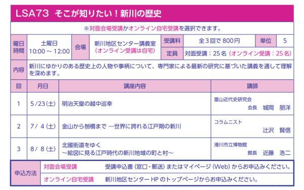 講座番号 LSA73 『そこが知りたい!新川の歴史』