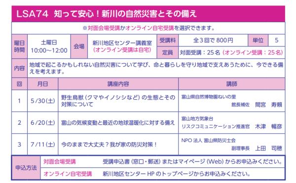 講座番号 LSA74 『知って安心!新川の自然災害とその備え』