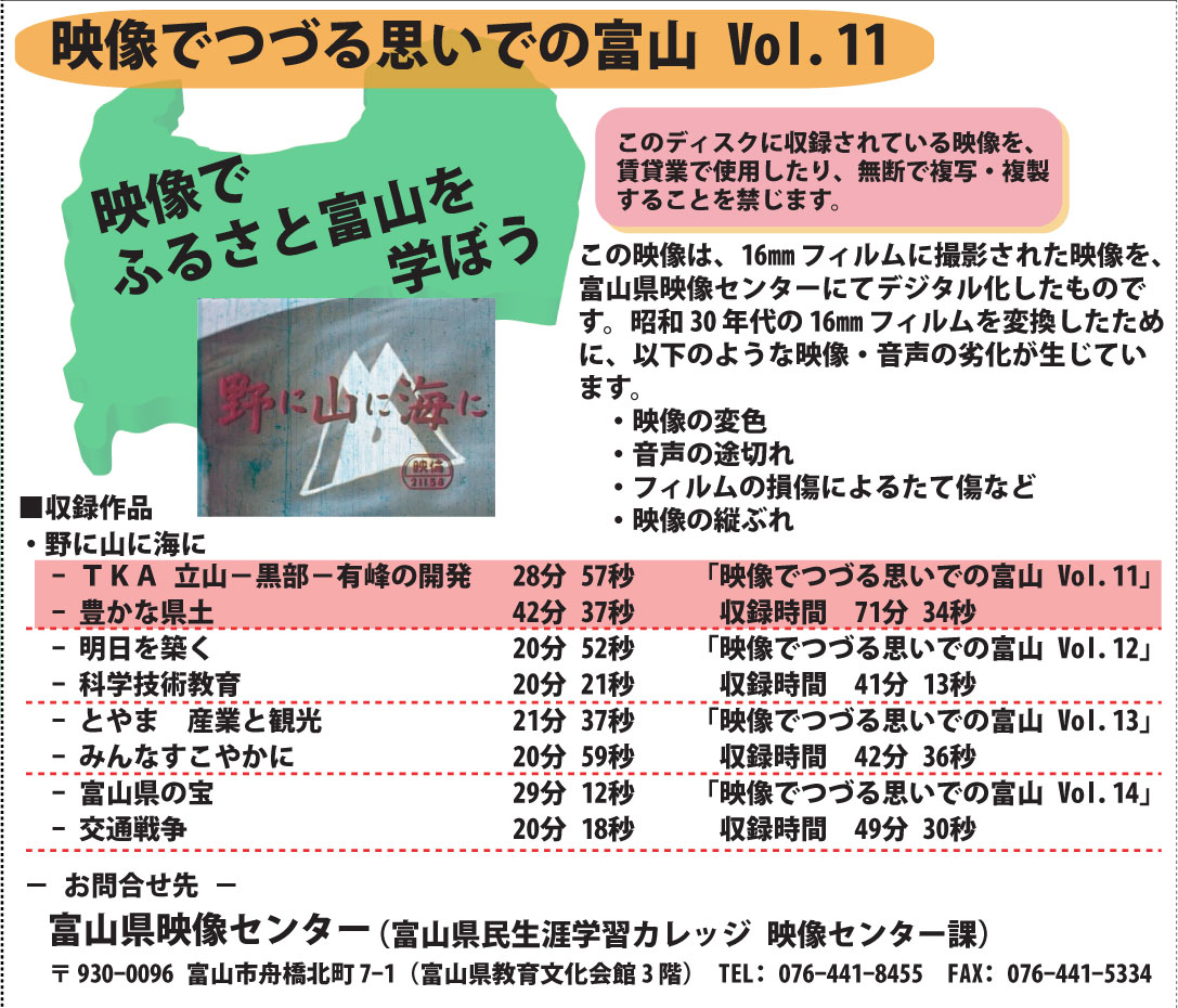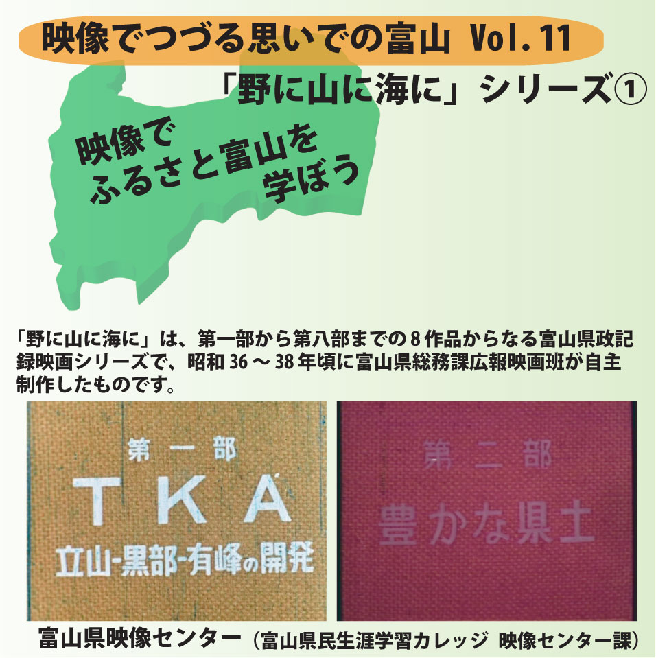昭和36年~38年頃に富山県総務課広報班が自主制作した「野に山に海に」シリーズ。