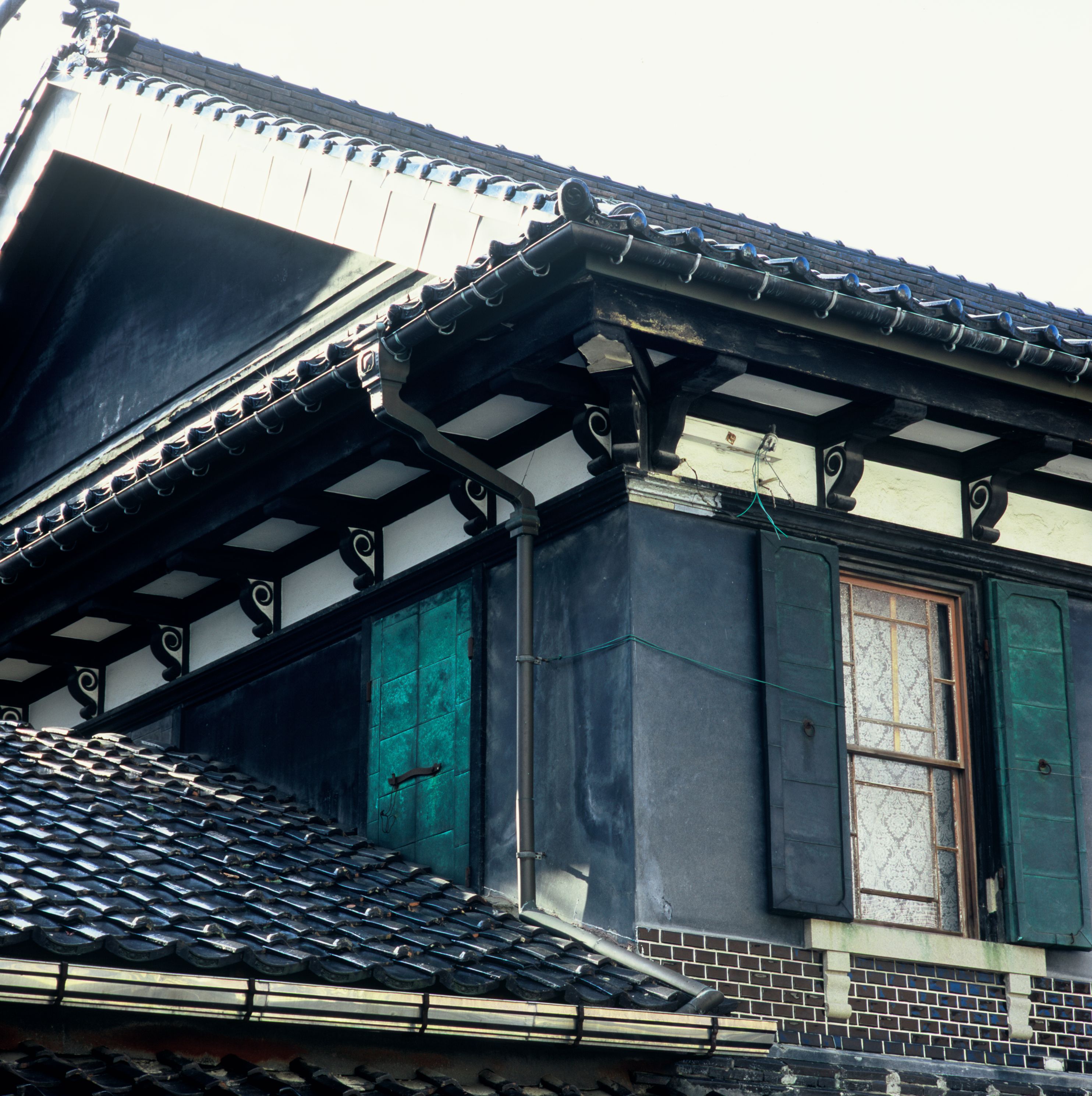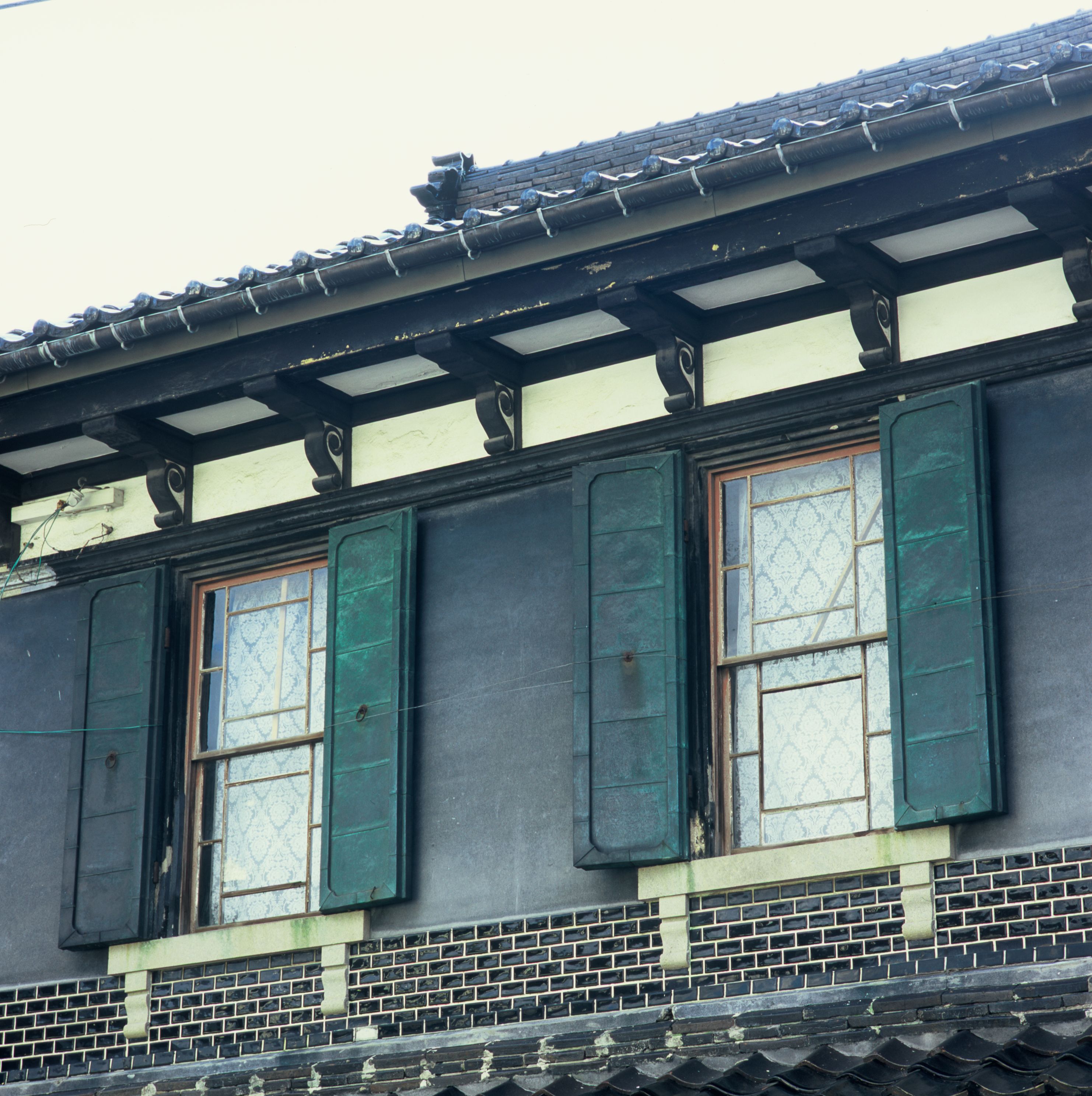 隣家境にあたる建物の両妻側には,煉瓦の防火壁が立ち上げられており、防火に配慮した土蔵造りとなっている。