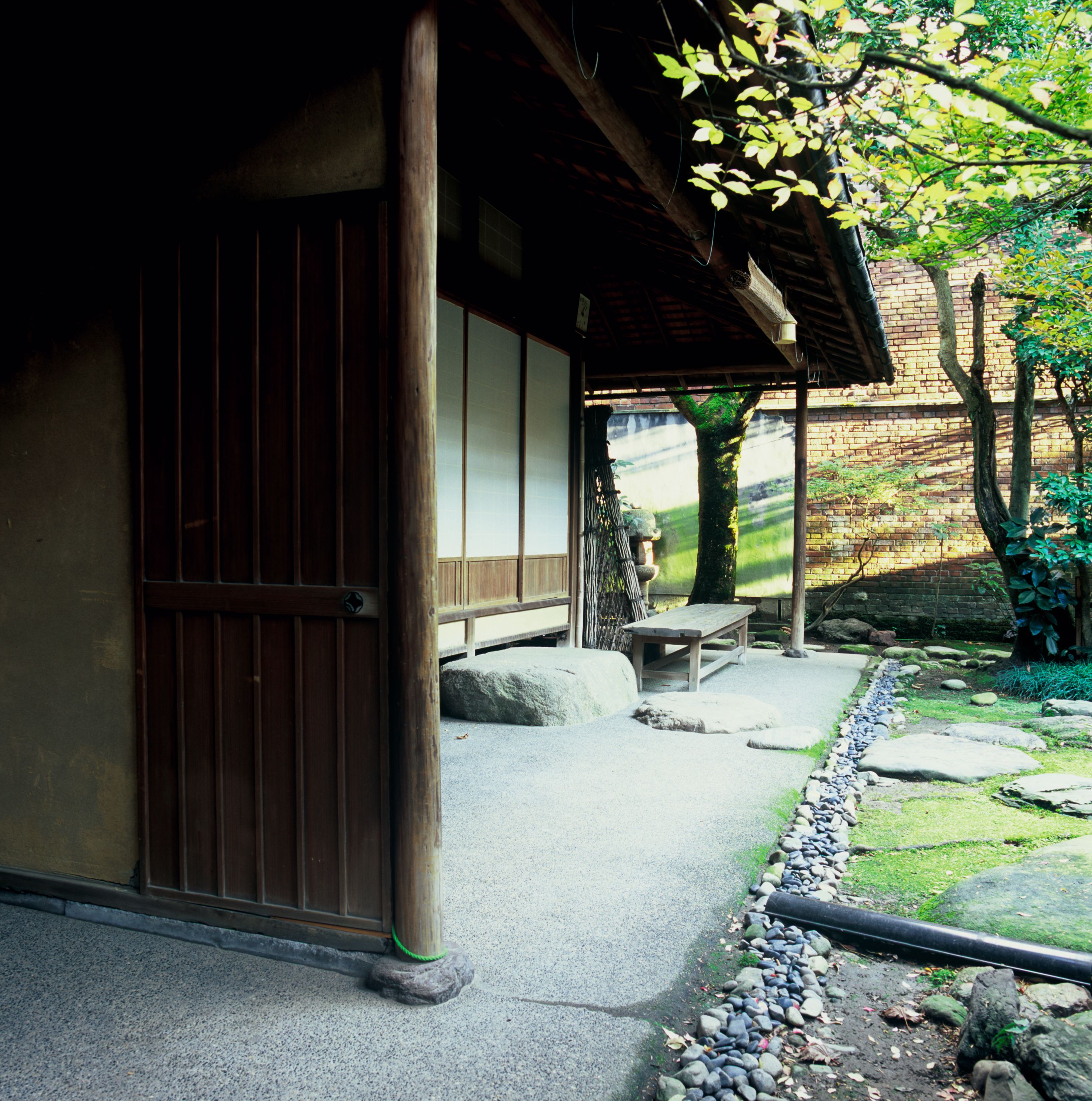 主屋正面には1間の土庇がつき、2階は大壁の黒漆喰である。興味深いのは土蔵造りという重苦しい形態に成らざるを得ないにもかかわらず、主屋1階裏側の庭園に面した部分を軽快で,開放的な意匠で纏めている点である。