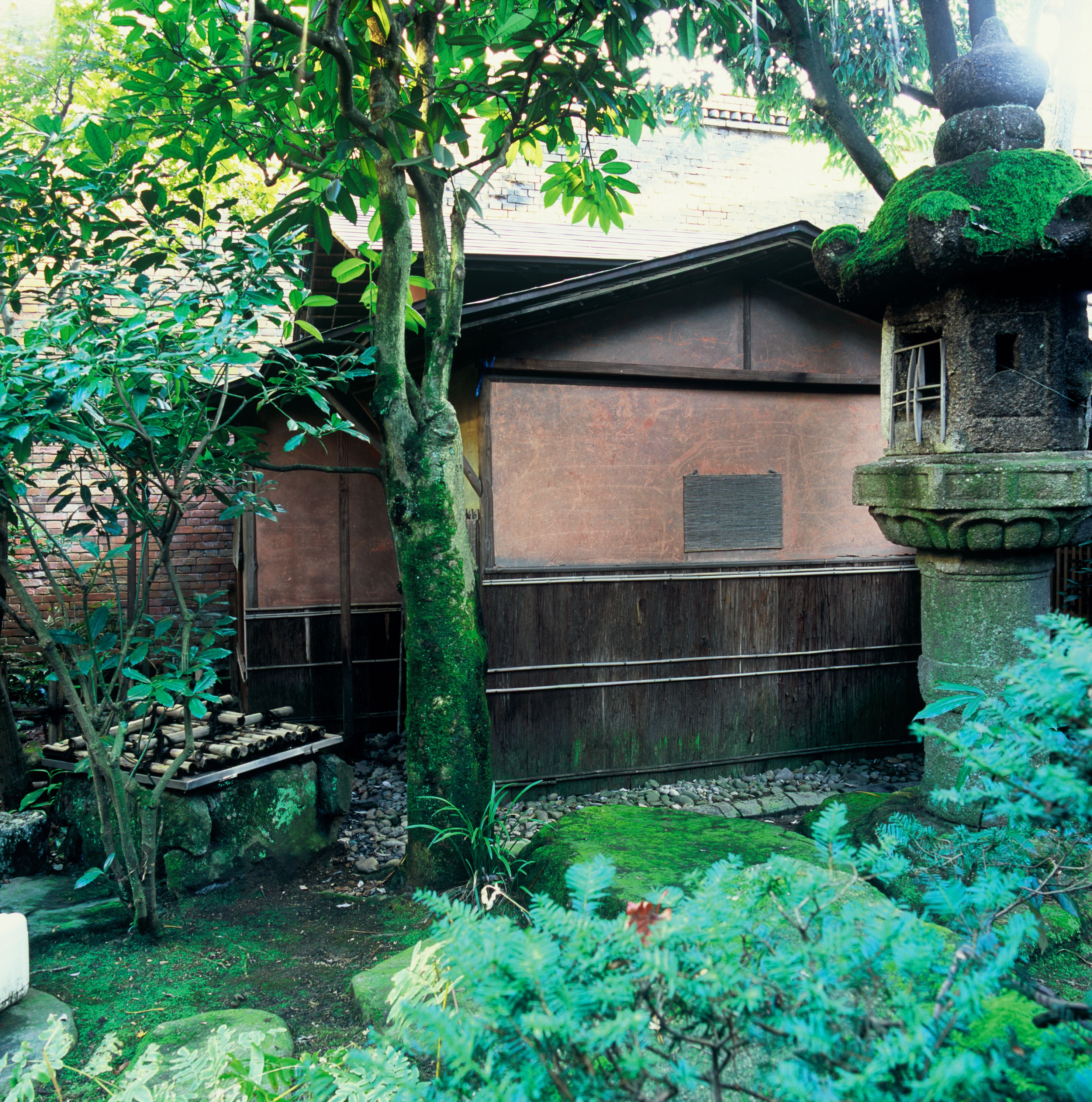 明治33年の高岡大火のあと、主屋の背後に設けられた中庭南側に建つ小規模な茶室。