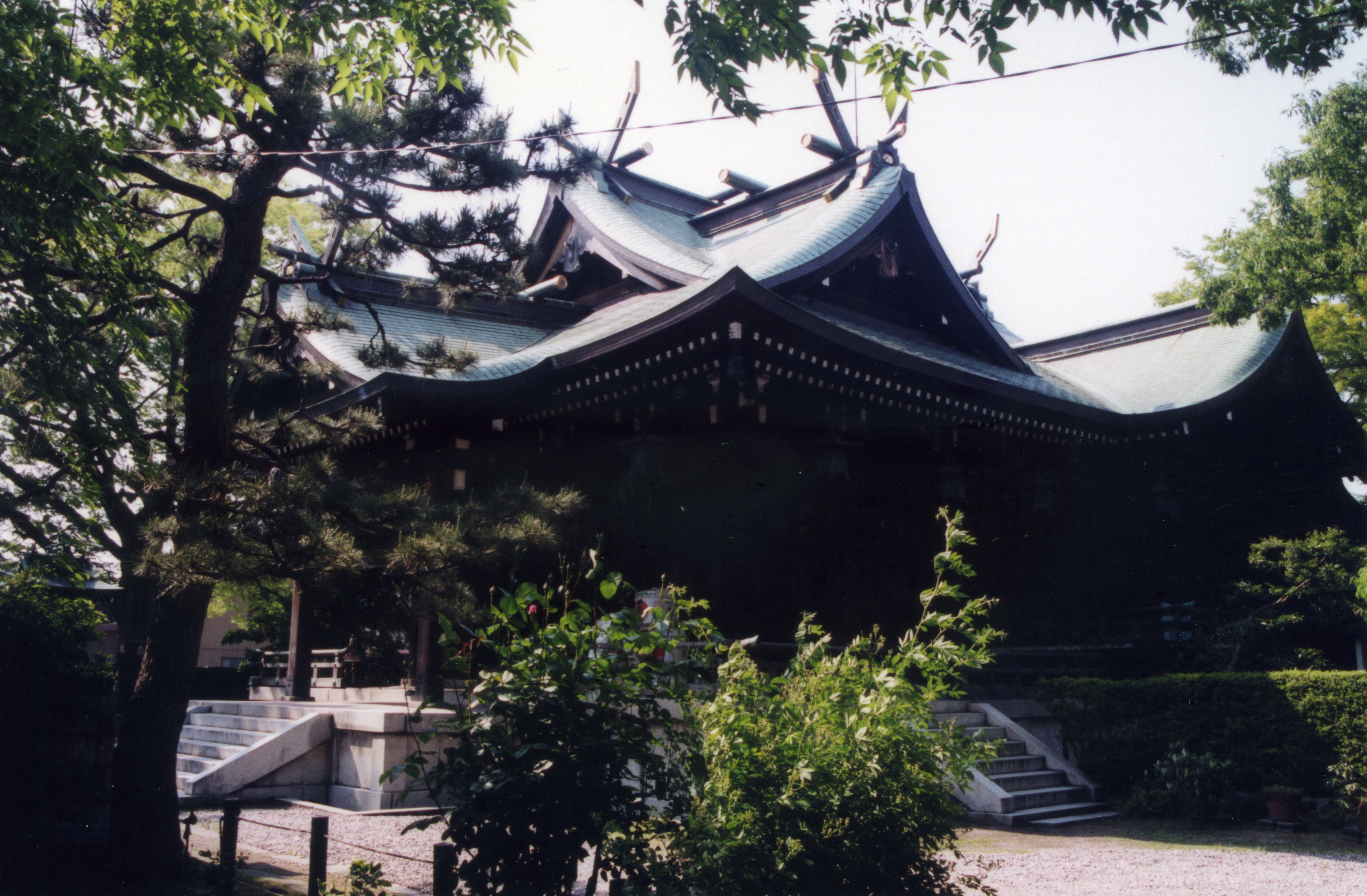 本殿と拝殿をつなぐ釣殿は昭和10年に建築されており、南北棟の銅板葺きである。