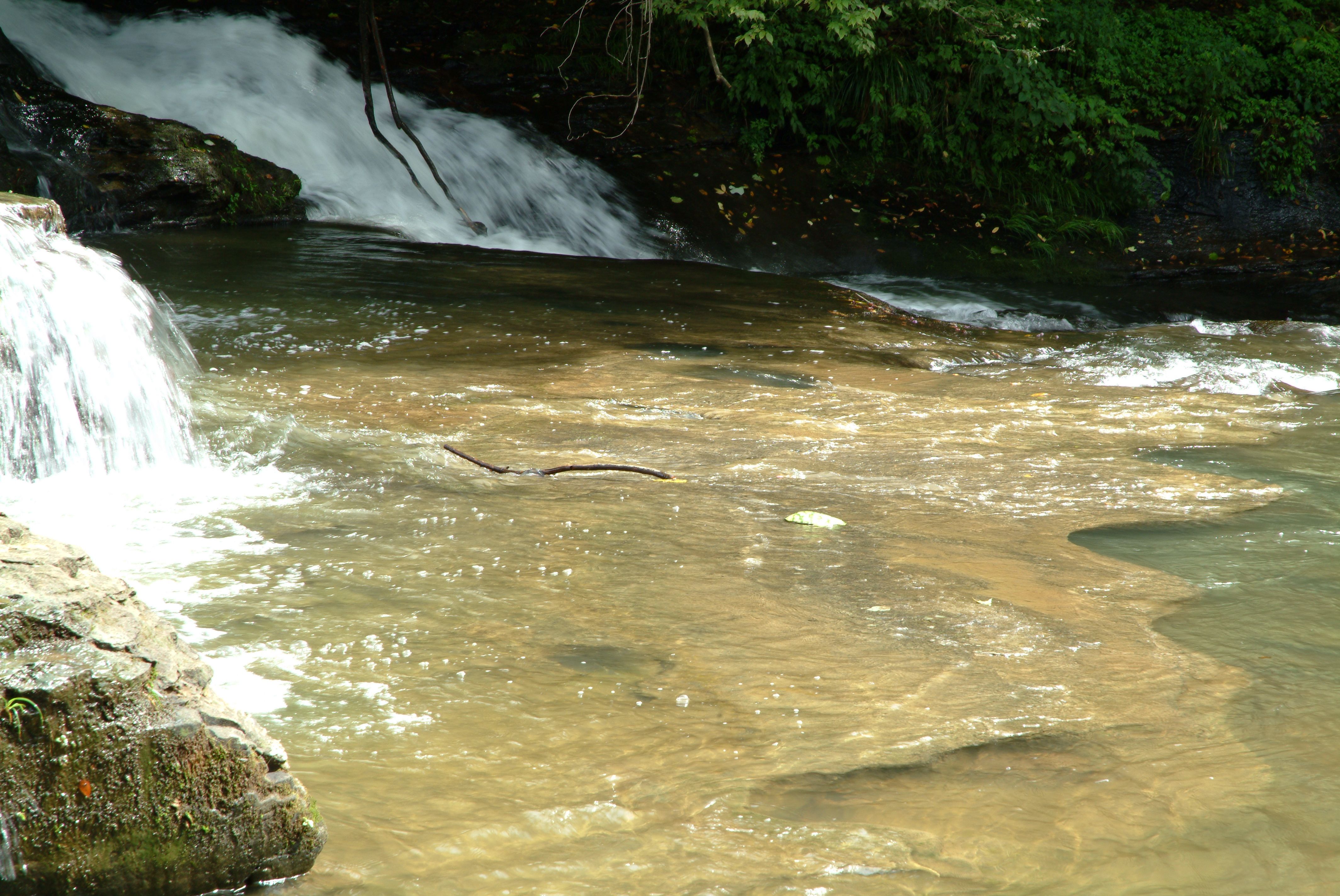 また、一の滝の下流20数mのところに大小20数個の丸い穴があいており、それを「おうけつ」という。小さな窪みに石ころが入って、水の流れで回転しながら大きく丸い窪みをつくったものである。これは珍しい地質現象であり、学術上貴重なものである。