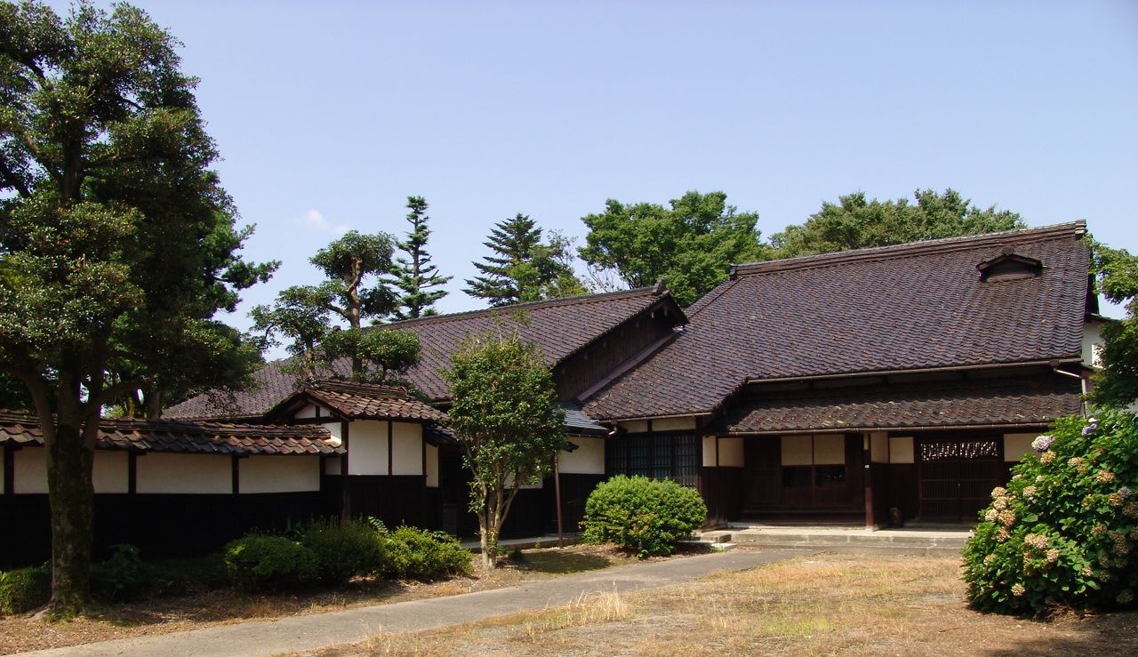 主屋は、周囲を堀で囲まれた敷地の中央に建つ。