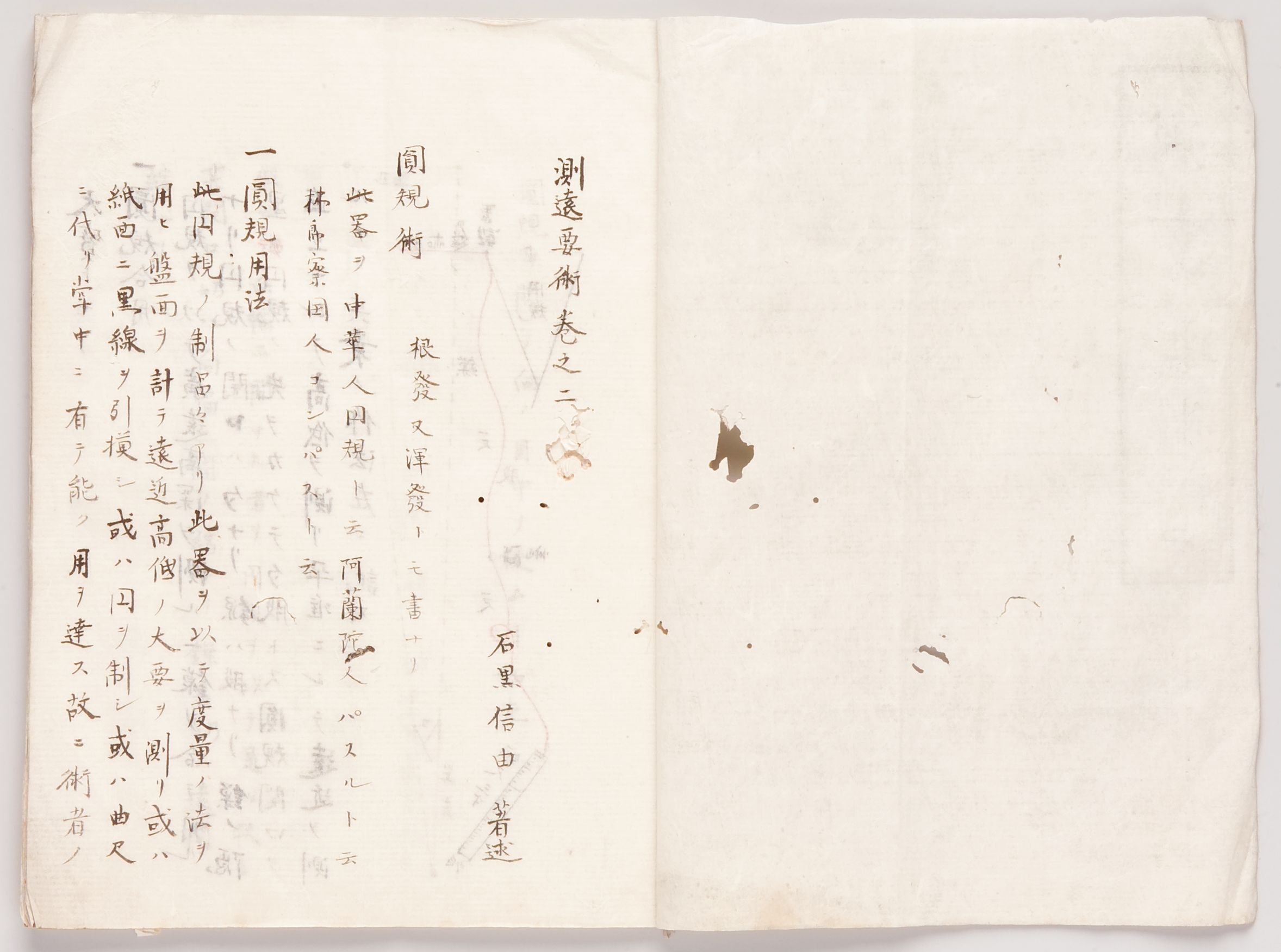 そのうち磁石盤と強盗式磁石台は、師の石黒信由が文政2年藩命をうけて、加越能三州を測量したときに使用したものと同種である。