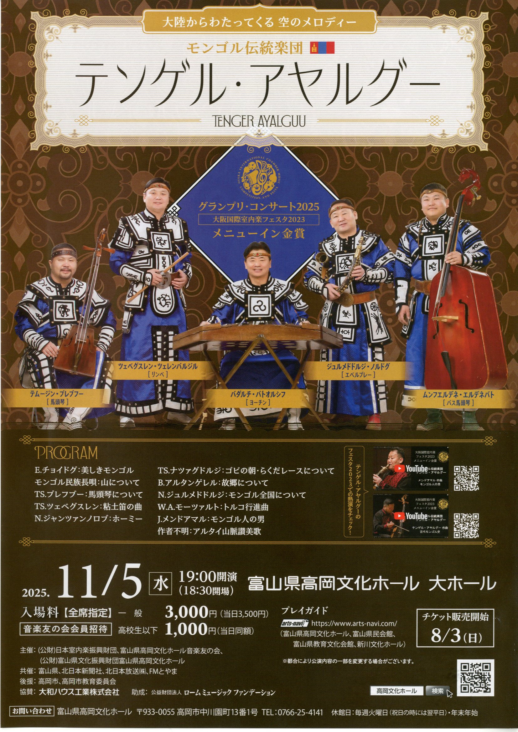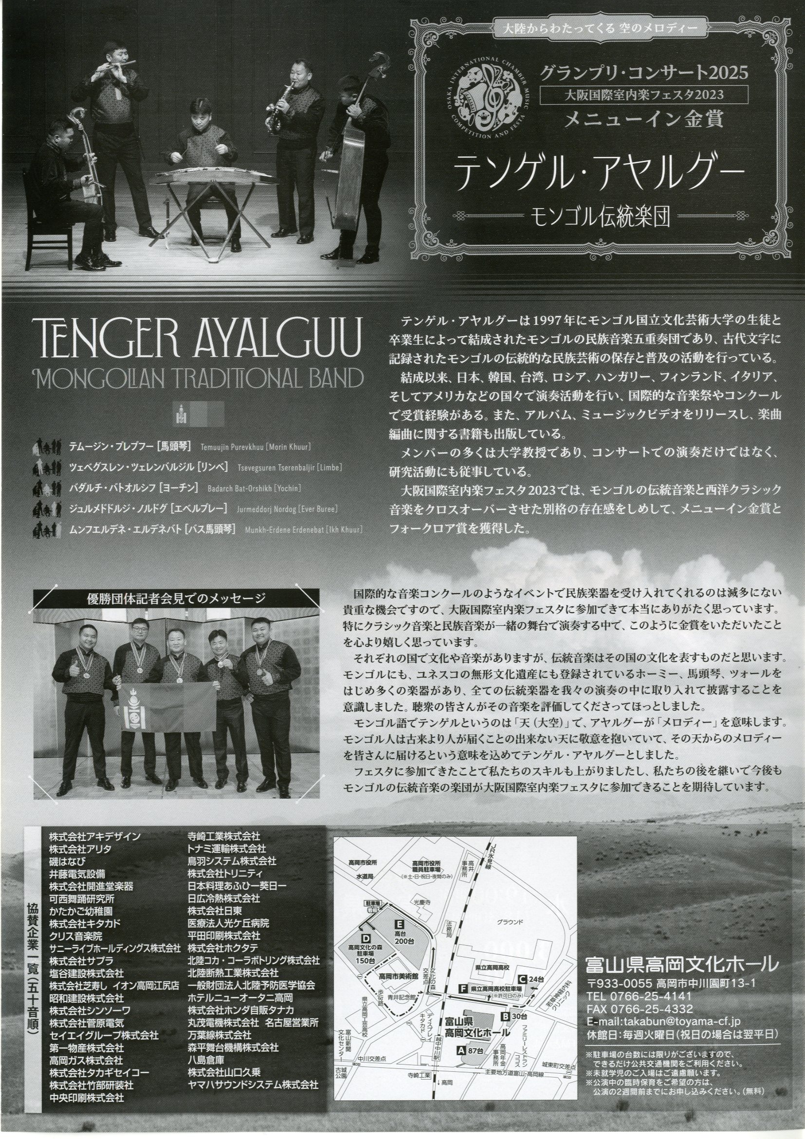 富山県高岡文化ホール モンゴル伝統楽団 テンゲル・アヤルグー