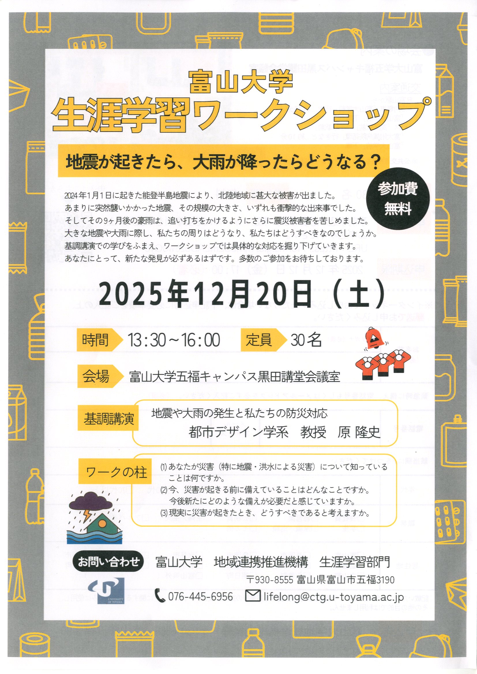 富山大学生涯学習ワークショップ2025「地震が起きたら、大雨が降ったらどうなる?」