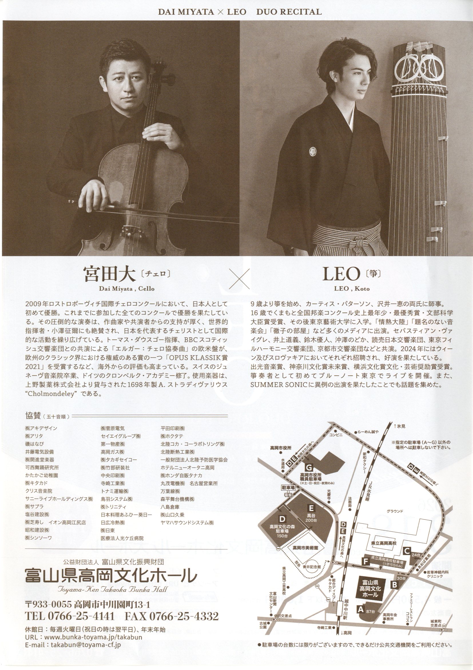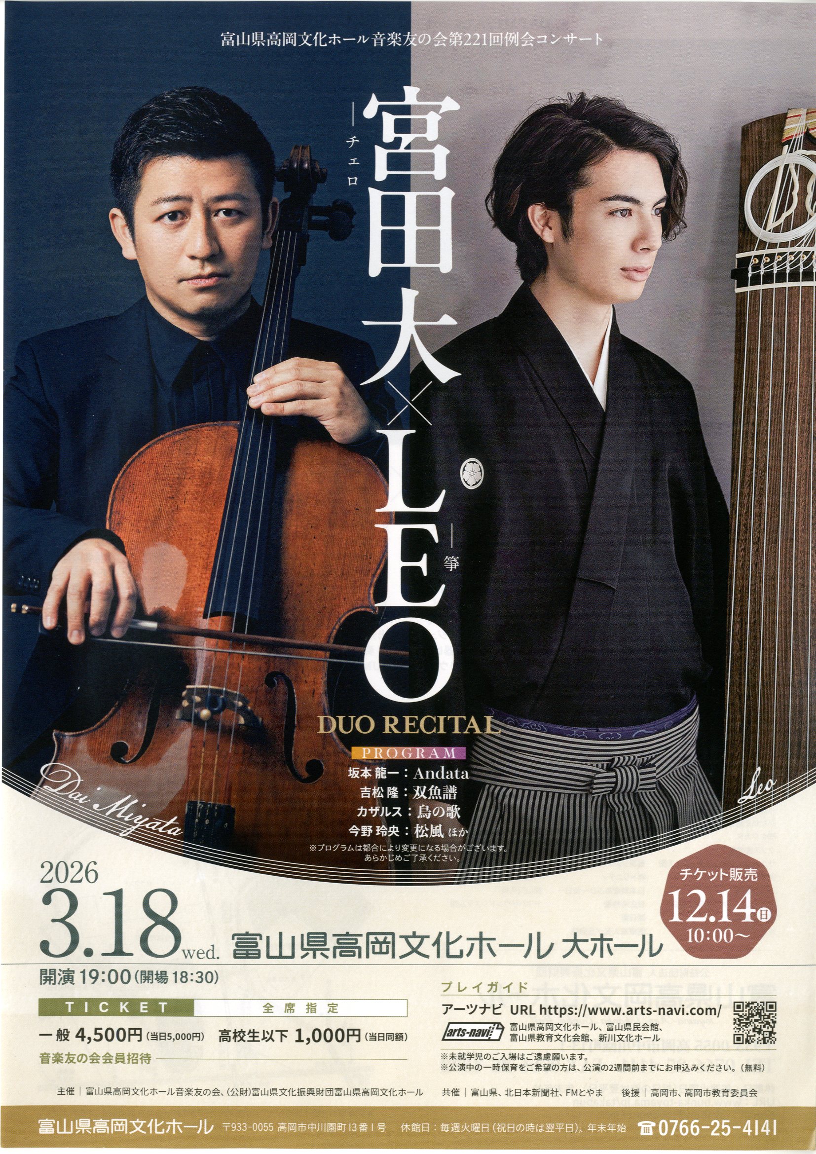 富山県高岡文化ホール 宮田 大(チェロ)×LEO(箏) デュオ・リサイタル