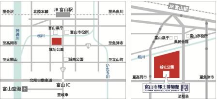 地鉄バス「城址公園前」下車 徒歩2分 富山ミュージアムバス「郷土博物館・佐藤記念美術館前」下車 徒歩2分 市内軌道環状線「国際会議場前」下車 徒歩2分 |