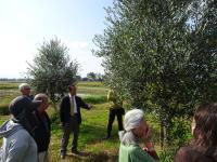 つながる体験コース「ふるさとの食から学ぶ」 第4回を実施しました。 [更新日:2025年11月8日] 日 時:令和7年11月7日(金)9:30~11:30 会 場:オリーブハウス 講 師:株式会社オリーブ楽園となみ 専務取締役 余西 孝之 氏 講座題:「オリーブをとなみに ~生産にかけるおもい~」 講座風景 株式会社オリーブ楽園となみ 専務取締役 余西 孝之 様 に講師をお願いして、「オリーブをとなみに ~生産にかけるおもい~」と題し、オリーブ園見学を含んだ体験講座をしていただきました。 まず始めに、完成したばかりのガラス張りのテラスで講義をしていただいました。オリーブパウダーのお茶をいただきながら、砺波でオリーブ栽培に取り組むことになったきっかけや栽培に伴う苦労、また、オリーブの色々な加工の仕方などを分かりやすく説明してもらいました。 次に物見塔に移動して、オリーブ園を一望しました。晴天にも恵まれ、たくさんのオリーブの木を含んだ景色の良さに受講者は満足そうでした。余西さんには受講者の多くの質問に対して一つ一つ丁寧に答えていただきました。 最後に、オリーブ園を見学しました。初めてオリーブの木や実を見た受講者も多数いて、興味津々の様子でした。ここでも受講者からの質問は絶えず、オリーブに対する関心が高まったようです。砺波の新たな特産品として応援していきたいとの声が聞こえました。 普段なかなかできない貴重な体験の場を与えてくださった余西さん、ありがとうございました。 --------------------------------------------------------------------------- 受講者の方の感想 ・オリーブといえば小豆島など南国のイメージでしたが、北陸での生産は大変興味があります。 ・砺波市のチューリップの縁からトルコのオリーブの縁につながる話をお聞きできてよかったです。現在までのご苦労及び今後に向けての試行錯誤を伺い、今後応援できる範囲のことをしたいと思います。 ・砺波にオリーブの木を栽培するきっかけ等を知り、オリーブの使用についていろいろ工夫し、商品化することを目指しておられることに感動しました。植えてから10年後にたくさんの実がなることが楽しみです。チューリップとオリーブの緑が砺波に広がり、日本海側の砺波として名を知られるようになったら良いと思います。 --------------------------------------------------------------------------- お問い合わせ先 砺波地区センター 〒932-0114 小矢部市清水95-1 電話番号:0766-61-2020 FAX番号:0766-61-2008