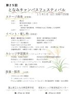 となみキャンパスフェスティバルは11月1日(土)開催です! [更新日:2025年10月2日] となみキャンパスフェスティバルは、受講者と高校生がともに、日頃の学習成果を発表する場です。 今年は11月1日(土)開催です。 是非、ご家族で遊びに来てください。 詳しくは以下のチラシをクリックしてご覧ください。 昨年の様子 ステージ発表 共学講座受講者 地区学習団体 作品展示 郷土学習 お問い合わせ先 砺波地区センター 〒932-0114 小矢部市清水95-1 電話番号:0766-61-2020 FAX番号:0766-61-2008