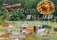 令和8年度前期 第1回こどもまんなか教室「みつばちとの暮らし体験」を開催します! [更新日:2026年3月16日] 昨年度より新しく始まった、小学生とその家族を対象とした講座です。 今年度第1回は5月9日(土)に「みつばち」をテーマにした教室を開催します。みつばちの生態・蜂蜜搾り・蜂蜜の味比べを通して、美味しく楽しく自然を感じて体験してみましょう!!みなさんのお越しをお待ちしています! 詳細についてはチラシをご覧ください。(チラシは砺波地区各小学校等に配付されます。) <募集期間> 4月19日(日)9:00より 申込は こちらから お問い合わせ先 砺波地区センター 〒932-0114 小矢部市清水95-1 電話番号:0766-61-2020 FAX番号:0766-61-2008
